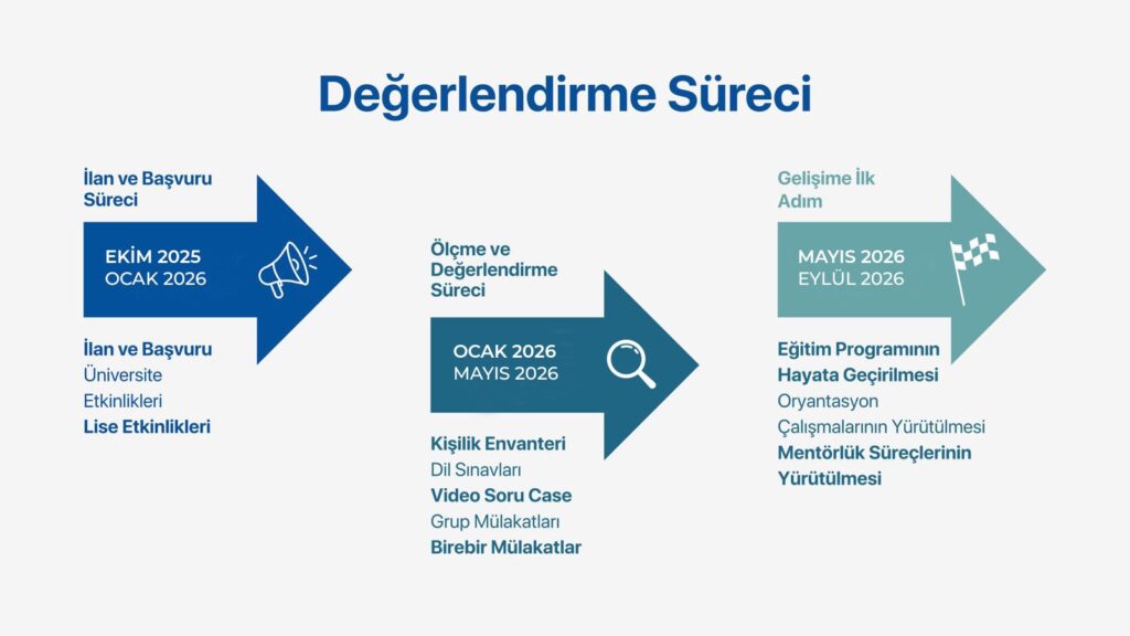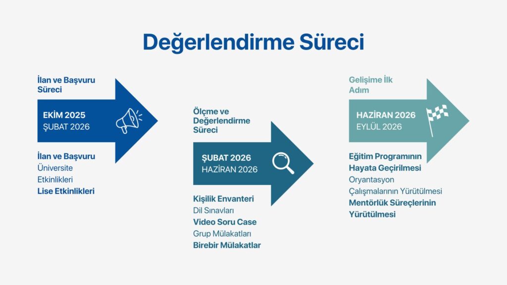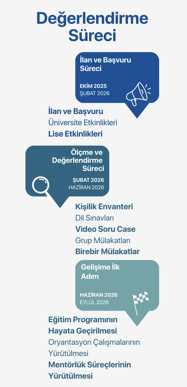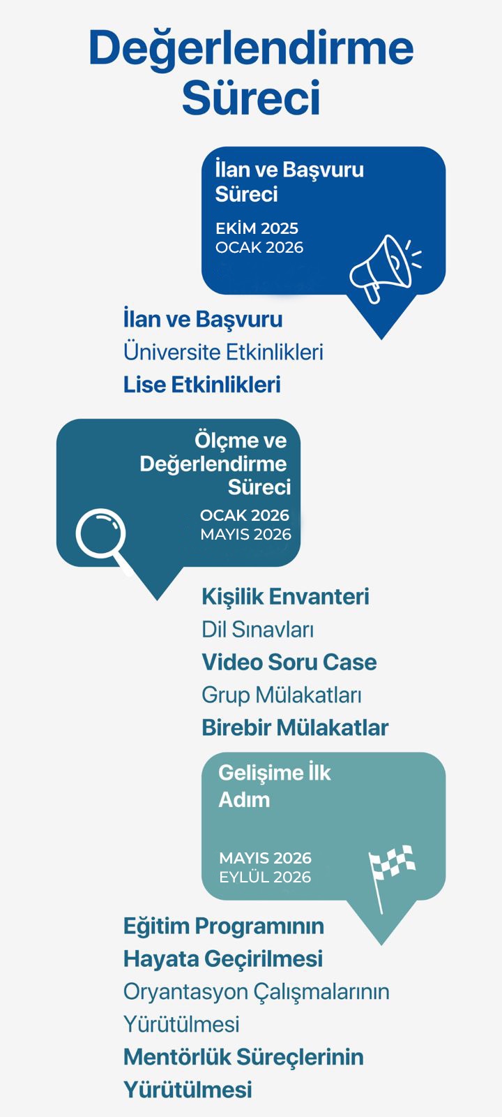 Tüm başvurular tamamlandıktan sonra başvuru kriterlerimizi sağlayan adaylara genel yetenek testi tanımlanacak. Süreç haritasına ve tarih detaylarına başvuru sayfasından ulaşabilirsin. Başvuru adımı tamamlandıktan sonra önündeki yeni süreçler için seni bilgilendireceğiz.